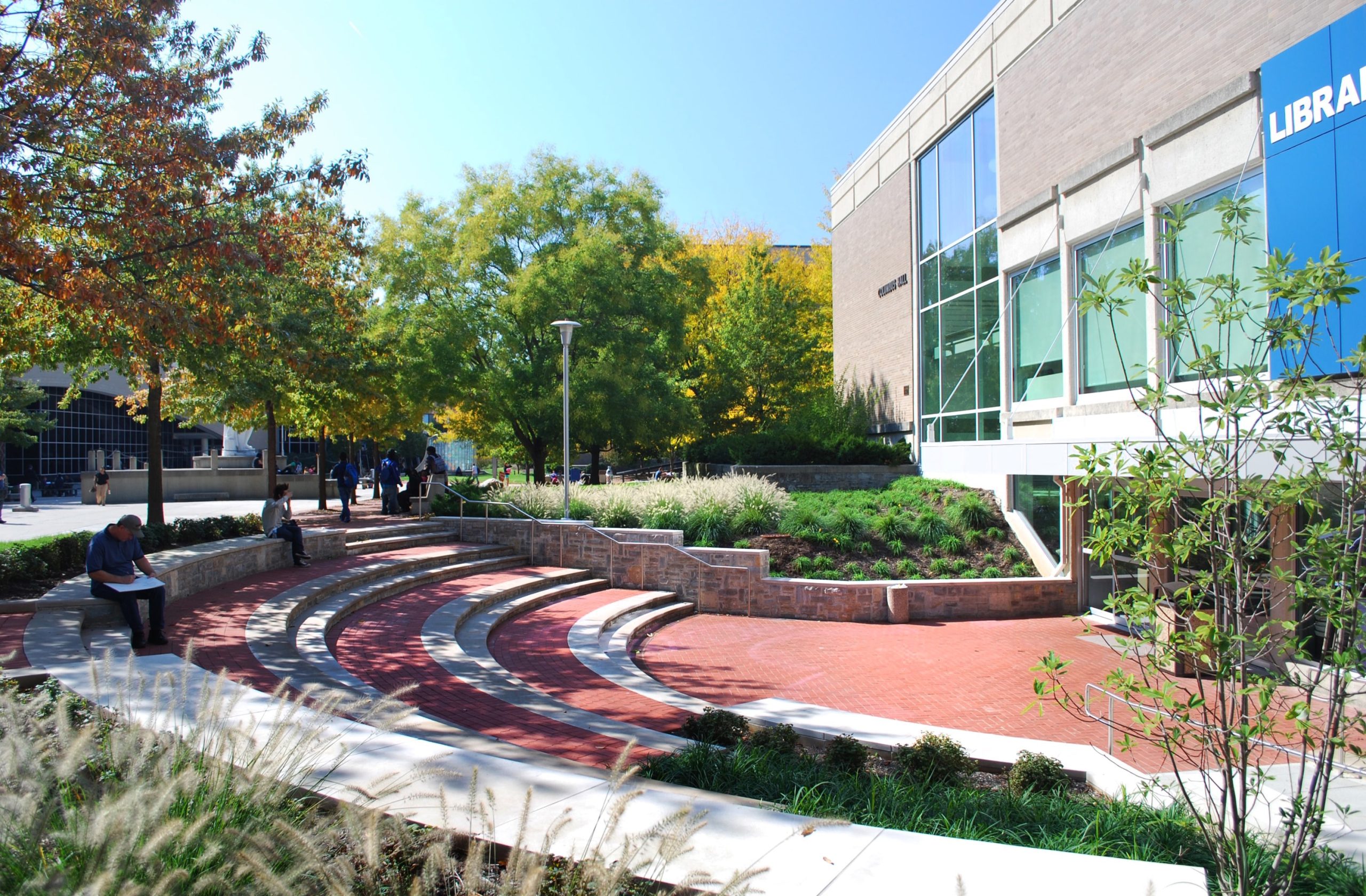 The renovation of Columbus Hall created a 21st-century learning environment for the library on Columbus State Community College’s main campus. As a part of the building transformation, EDGE designed a new entry plaza and amphitheater, providing an improved entry experience and creating an outdoor gathering spot. These elements also engage the building more effectively with the existing campus pedestrian mall.