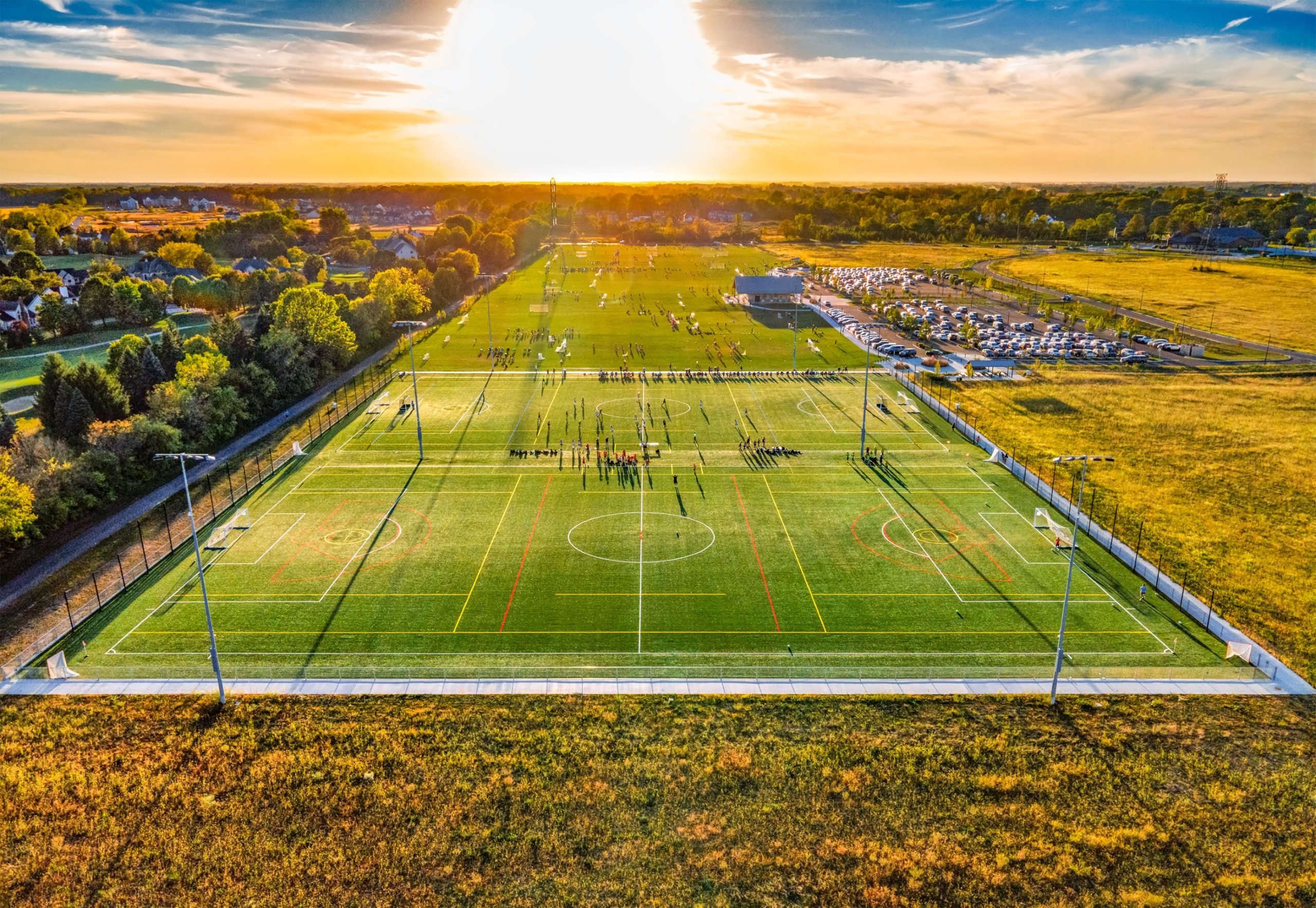 A 45-acre athletic field complex serves as a key component of the broader campus, establishing the site as a high-performing sports destination. The complex includes lit synthetic turf fields, high-performance grass fields, and dedicated spaces that support teams, spectators, and event operations. Concession and restroom facilities, internal roadways, and parking areas are carefully organized to create a seamless arrival and circulation experience. Carefully planned field programming, parking ratios, and amenities, ensure the campus remains flexible and responsive to evolving needs.