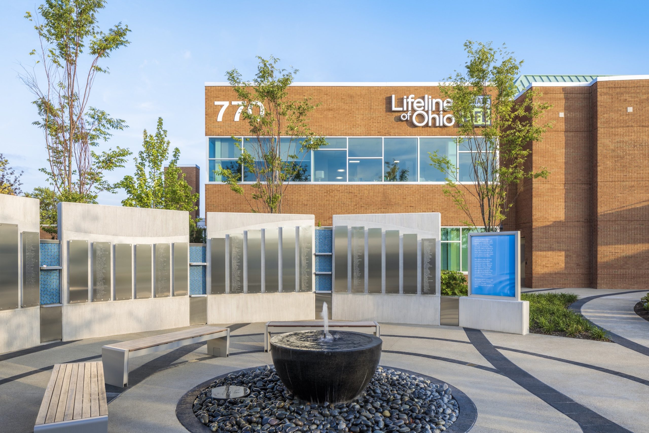 The Donor Memorial at the Lifeline of Ohio Headquarters celebrates the “Gift of Life,” providing a dignified place to honor the gifts shared and the lives saved through organ, eye, and tissue donation.