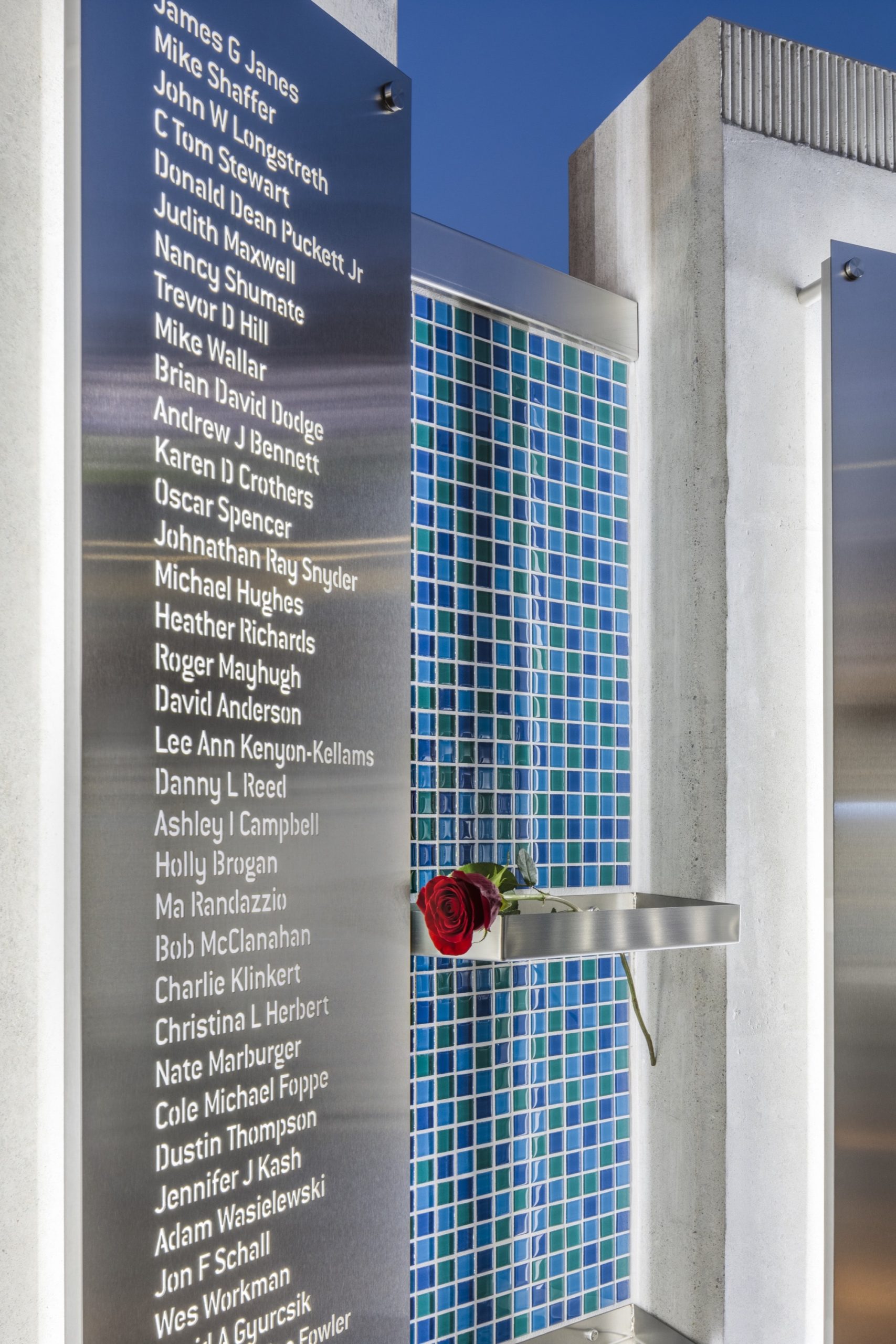 EDGE designed the memorial to capture how the act of organ donation creates a ripple that not only effects recipients, it touches families, friends, and future generations. In honor of their gifts, the names of 700+ donors are mounted on eight concrete walls, each representing one of the eight lives that can be saved by just one donor.