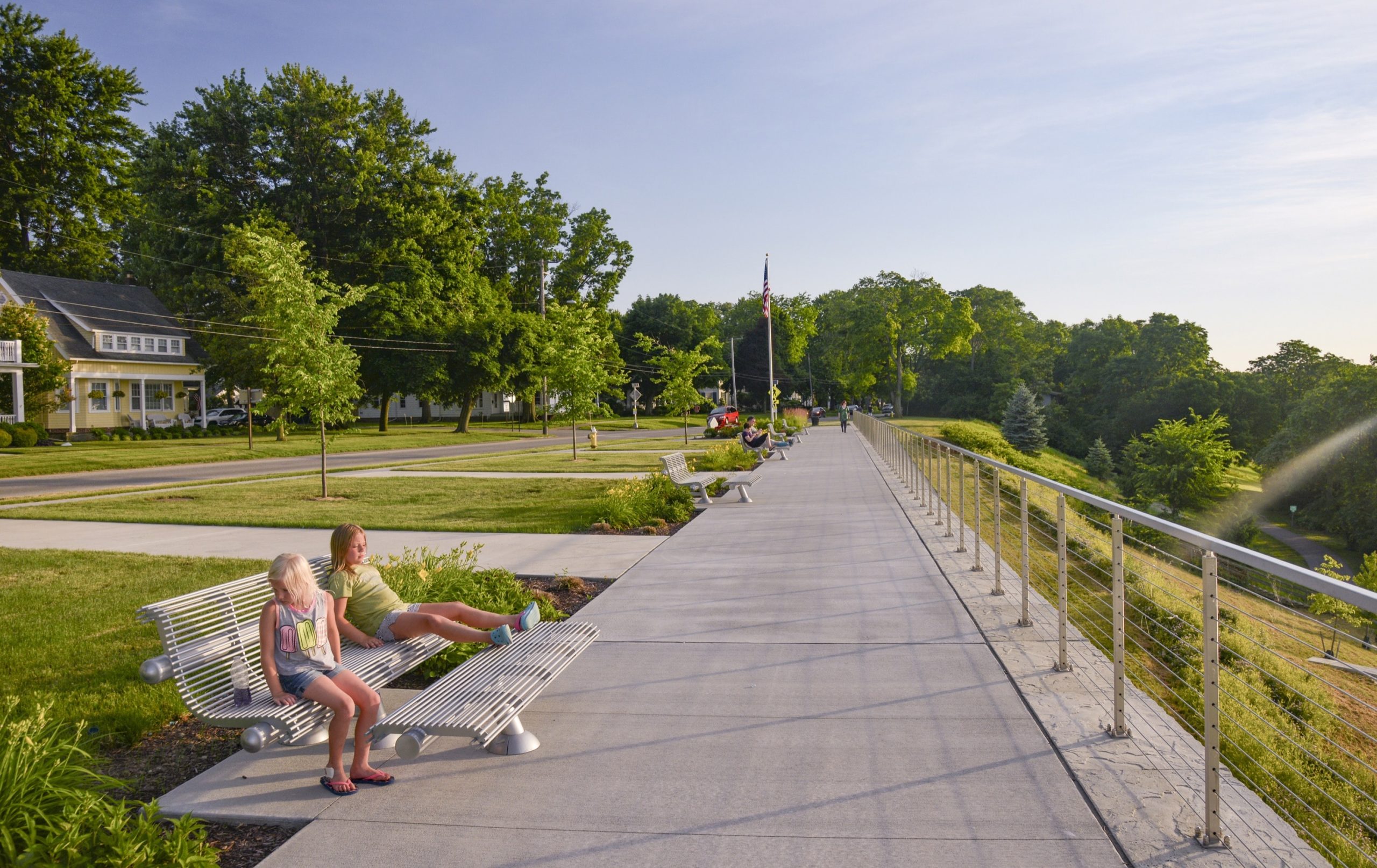 Riverside Park dates back to 1915, when the land was gifted to Perrysburg, Ohio. It is one of the city’s oldest public open spaces. Situated along Front Street, the existing park had a dramatic 40-foot elevation change, which restricted access to the lower level.