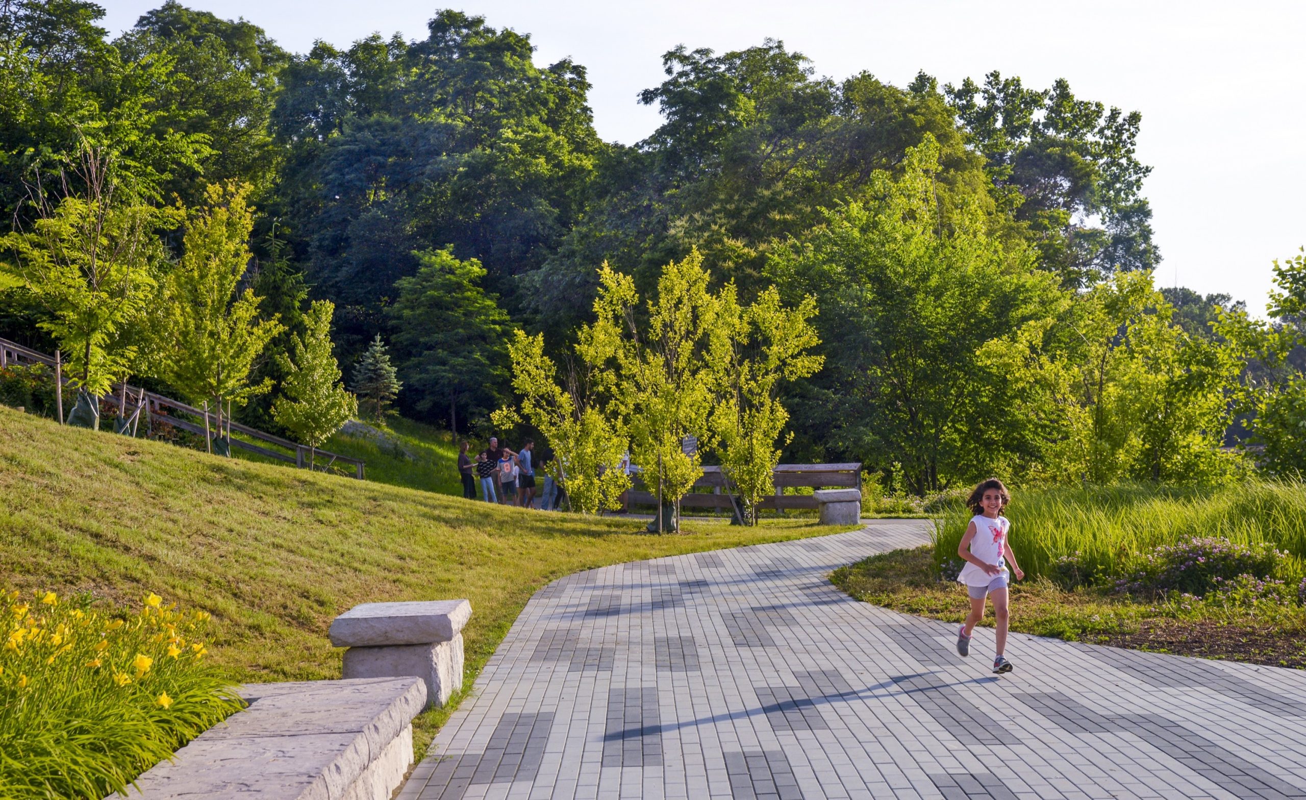 Prompted by community feedback, improvements focused on providing an accessible route to the Maumee River waterfront via a universally accessible walkway and series of ramps. The park’s lower level was also enhanced with a new hardscape plaza connecting to the adjacent multi-use path. The plaza includes casual seating and plantings that draw inspiration from the natural elements and historic character of northwest Ohio canals.
